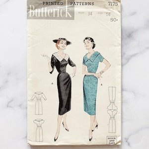 1950s Slim Wiggle Dress Pattern 2 Style Versions Simplicity 1239 Vintage Sewing Pattern Uncut Bust 36